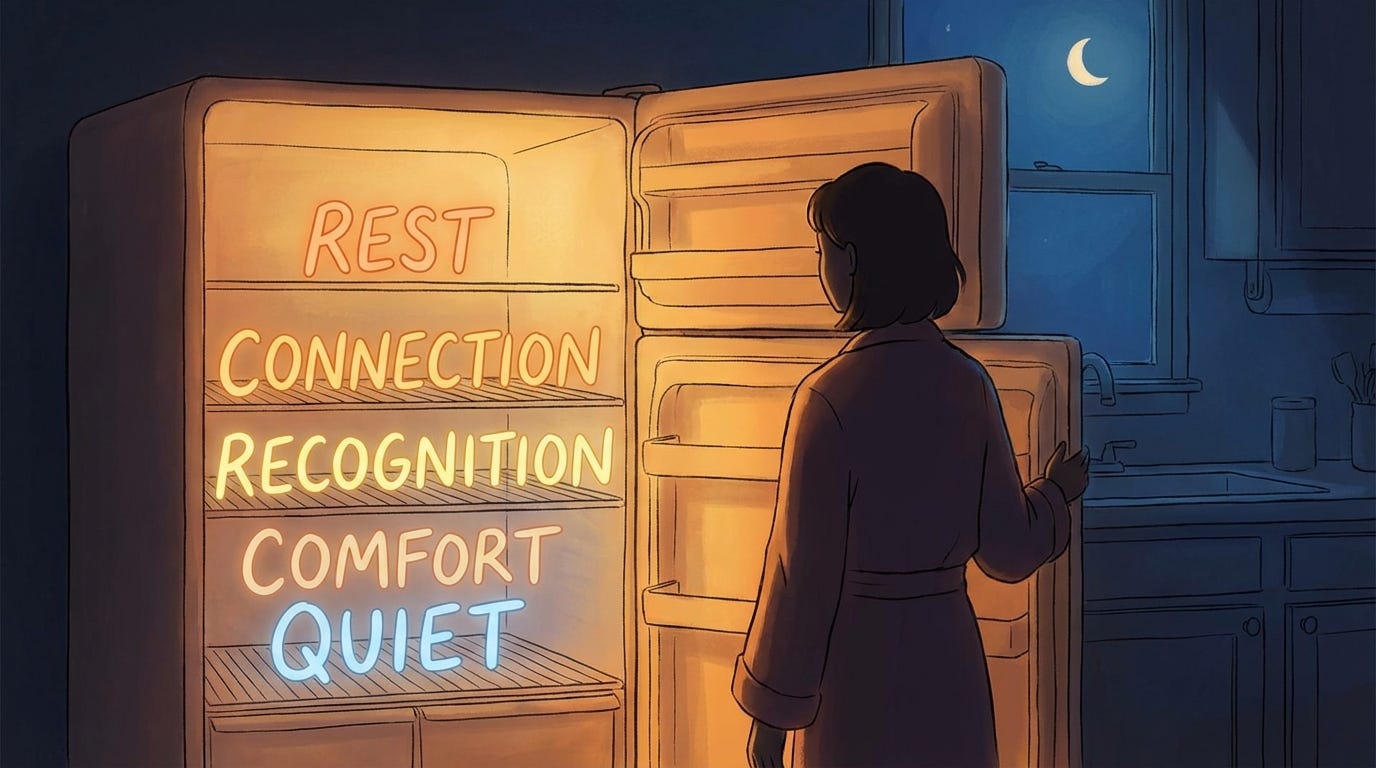 None of these needs is shameful. Every single one is valid and human. But purchases satisfy them for about as long as a handful of chips satisfies real hunger. There’s a brief moment of comfort, and then it fades, sometimes with a crash. The question worth sitting with is: how do you actually feed what’s hungry?